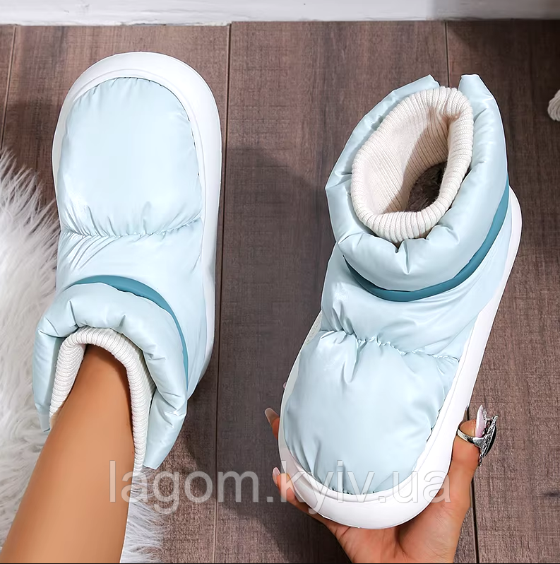 Жіночі зимові блакитні ботильйони, рожеві дутики, черевики на товстій платформі, що не ковзає